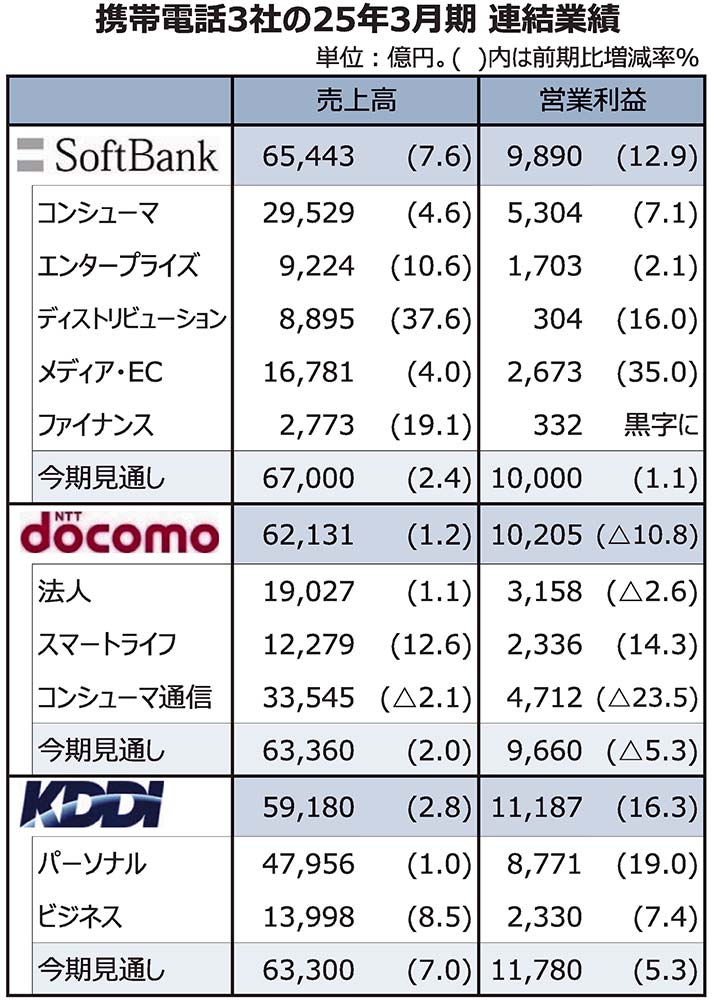 2025.05.26 携帯大手3社25年3月期決算、「経済圏」拡大戦略が激化 明暗分かれる各社業績