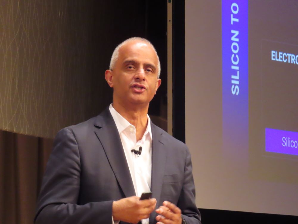 サブラマニアン氏は「Re-engineering engineering(エンジニアリングの再構築)」をテーマに講演し、ハードウエアとソフトウエアの開発を統合的に進める技術動向を紹介。SDV(ソフトウエア定義型車両)やデータセンターを例に挙げ、回路設計やシミュレーションを支援する同社の強みをアピールした。