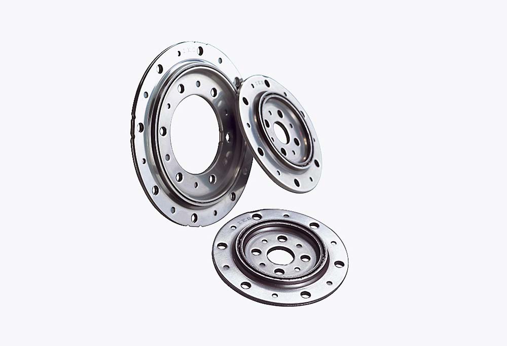 LCRBは、同社にとって初のプレス成形の内外輪を採用したクロスローラーベアリング。あらゆる方向からの荷重を同時に受けることができるクロスローラーベアリングの長所を維持しつつ、大幅な軽量化と取り付け作業を簡易にした。