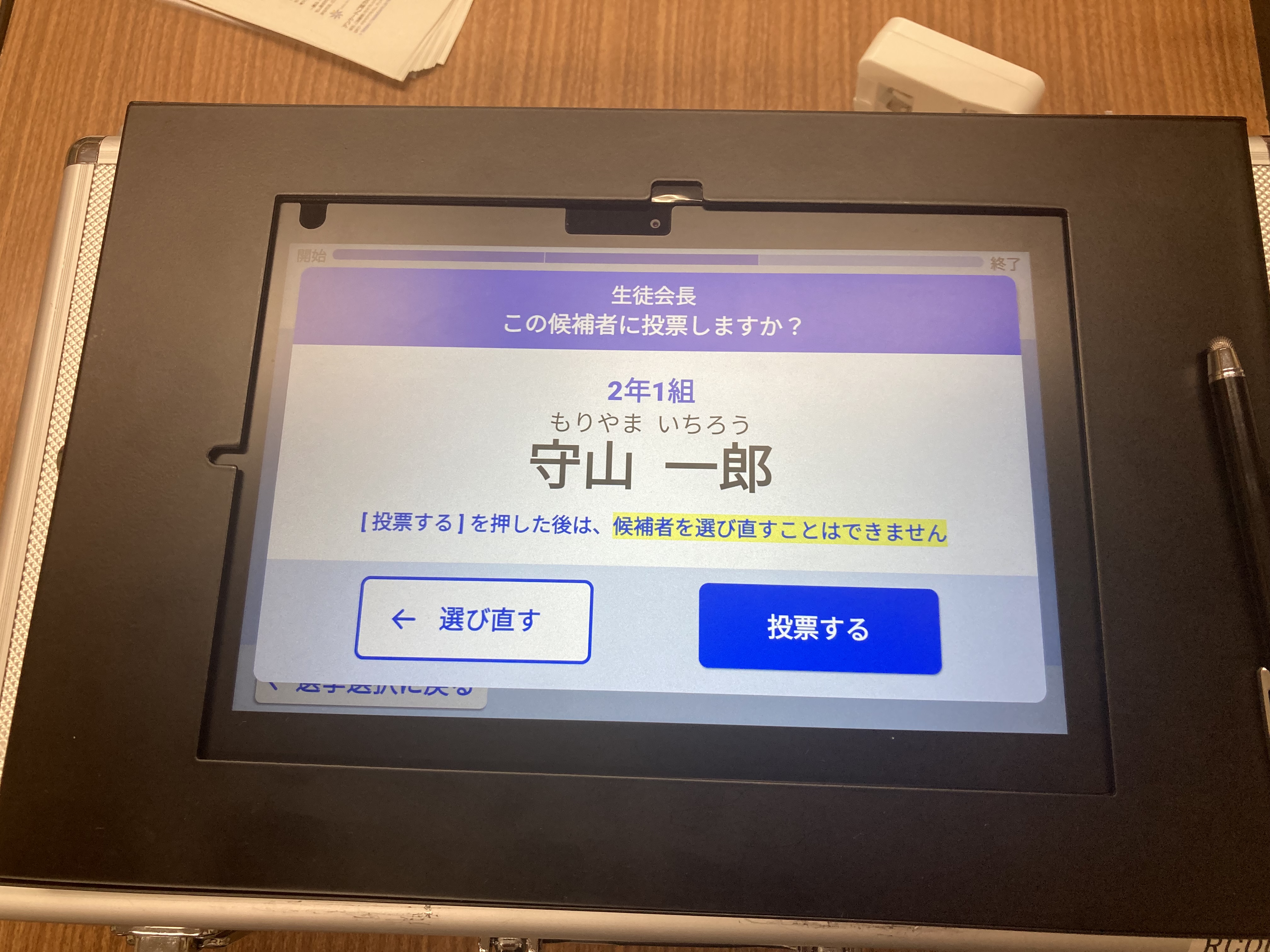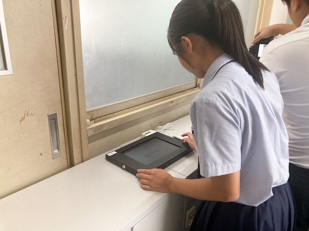 電子投票は中学・高校全生徒中、同校高等部2年生全7クラス(1クラス 40 人)が対象。タブレットは、各クラス3台用意して教室廊下に設置し、クラスの選挙管理委員の案内により3人ずつタッチペンを使用して投票。生徒会長、生徒会副会長の全2人(2役職)を決定する。