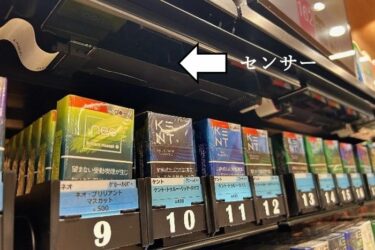 セルフレジの普及により、たばこや酒類、医薬品など年齢制限が必要な商品では、スムーズな運用と安全な仕組みづくりが課題となっている。現在、コンビニなどでのたばこ販売は、レジ内の後方に陳列された商品をスタッフが取り出す方式が一般的。このため、セルフレジの導入が進む中でも、たばこ販売はスタッフの対応が不可欠となる。