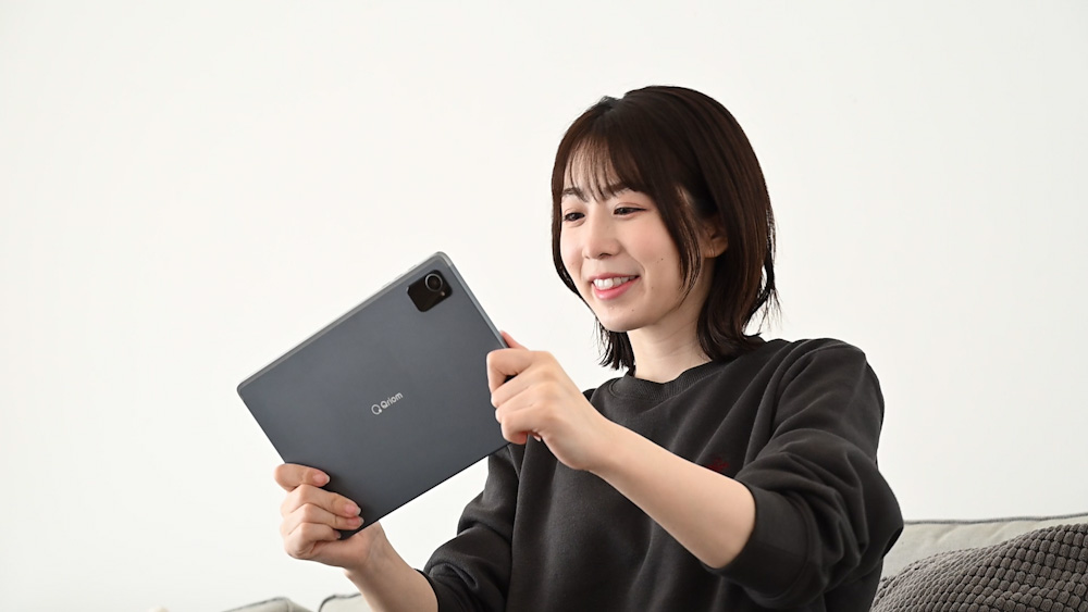同社デジタル家電のオリジナルブランド「Qriom(キュリオム)」として、手ごろな価格で高い機能性を備えた商品として売り出す。Android OS(Android 15)を搭載し、スマートフォンと同じ操作感で、初めてタブレットを使う人でも直感的に使いこなせる。