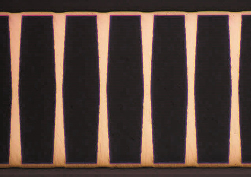 併せて、ガラスコア材向けスルーホールフィリング用硫酸銅めっき添加剤「トップルチナGCSシリーズ」も紹介。PRパルス電解用添加剤「トップルチナGCS PR」と直流電解用添加剤「トップルチナGCS TF」を併用することで、ボイドフリーかつ高速でスルーホールフィリングを実現。高アスペクト比スルーホールに対応する。