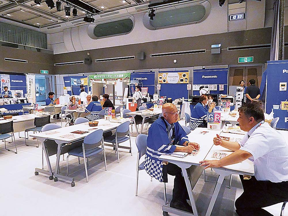 今回は関西社にとって秋合展の皮切り。来場者に商品を体感してもらうことに重点を置き、洗濯機や健康商品、冷蔵庫などの機能を実演提案できるように工夫。健康商品ではコリコランを全ての商談テーブルに置いて体感を促進したほか、調理家電では炊飯器で作ったおにぎりやオーブンレンジで作ったお菓子を提供するなど試食体感を推進した。