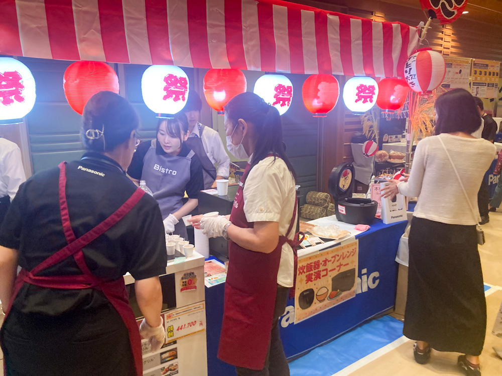 会場独自の取り組みとして商品体感をベースとしたスタンプラリーを実施。冷蔵庫やエアコン、掃除機など8カ所で展開した。毛玉クリーナーの山積み展示で雰囲気を盛り上げたほか、小世帯の暮らしに寄り添い、コンパクトでありながら上質の家電もPR。「高齢者の少数世帯向けに関連商品のベーカリーなどを訴求した」(同社専門店営業部兵庫営業課の橋本龍担当)。