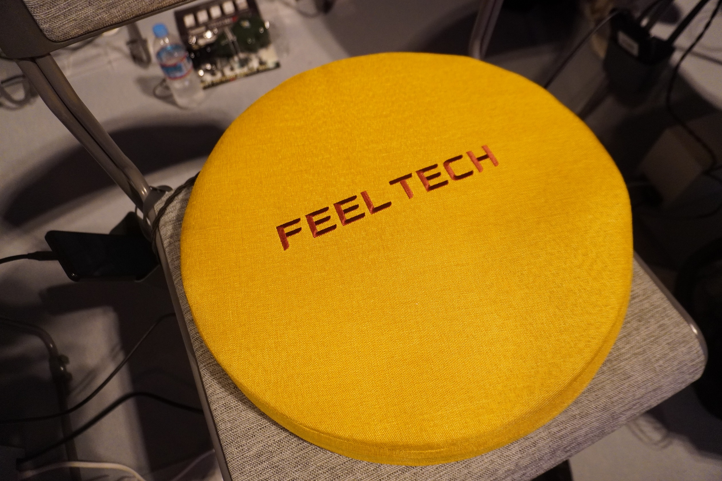 一部の座席は、フィールテック搭載席としてクッション型のデバイスを設置。デバイスを通して、ドリブルやゴール時の振動を感じられるようにした。