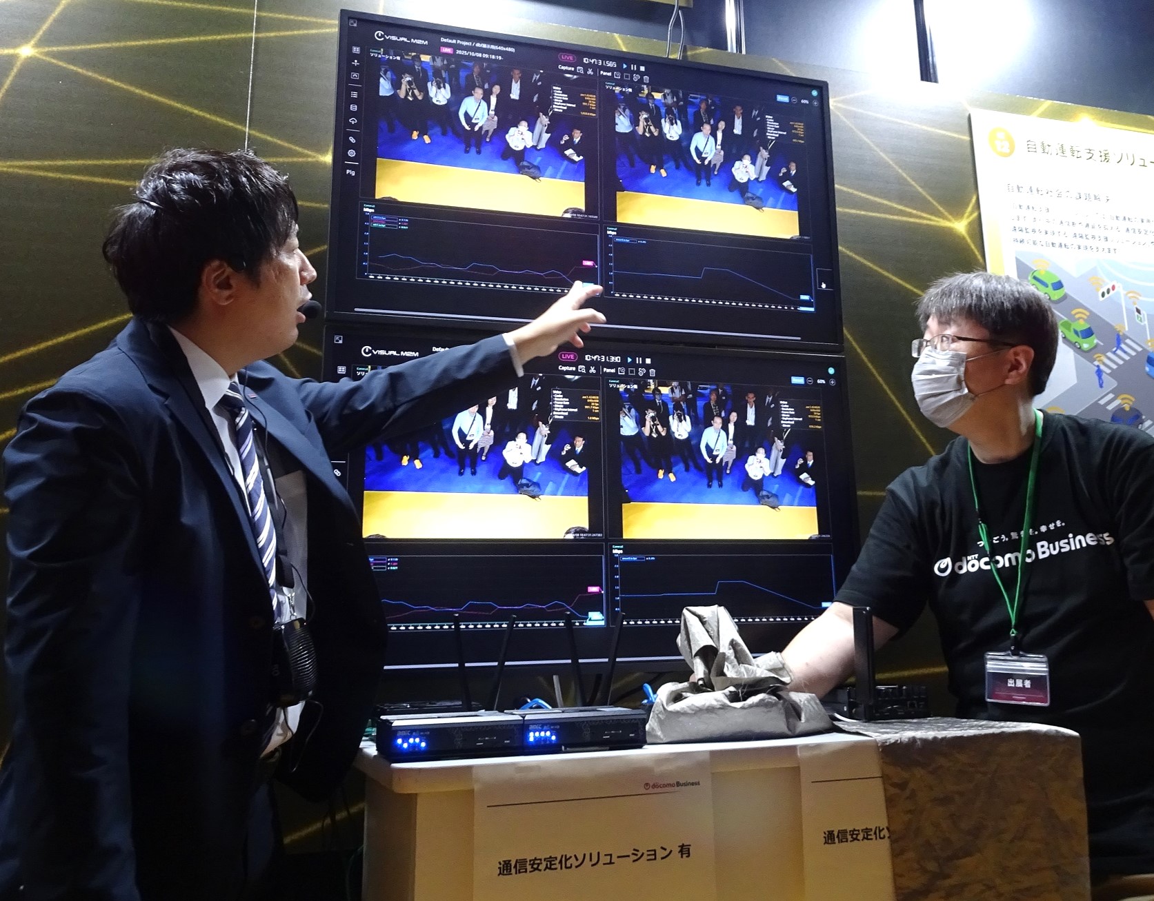 「NTT docomo Business Forum'25」で紹介した通信安定化ソリューションのデモ=東京都港区