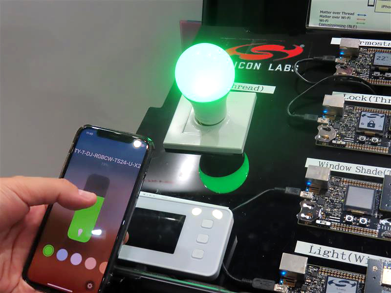 シリコン・ラボのデモ。スマートフォンで電球の明るさや色を操作する