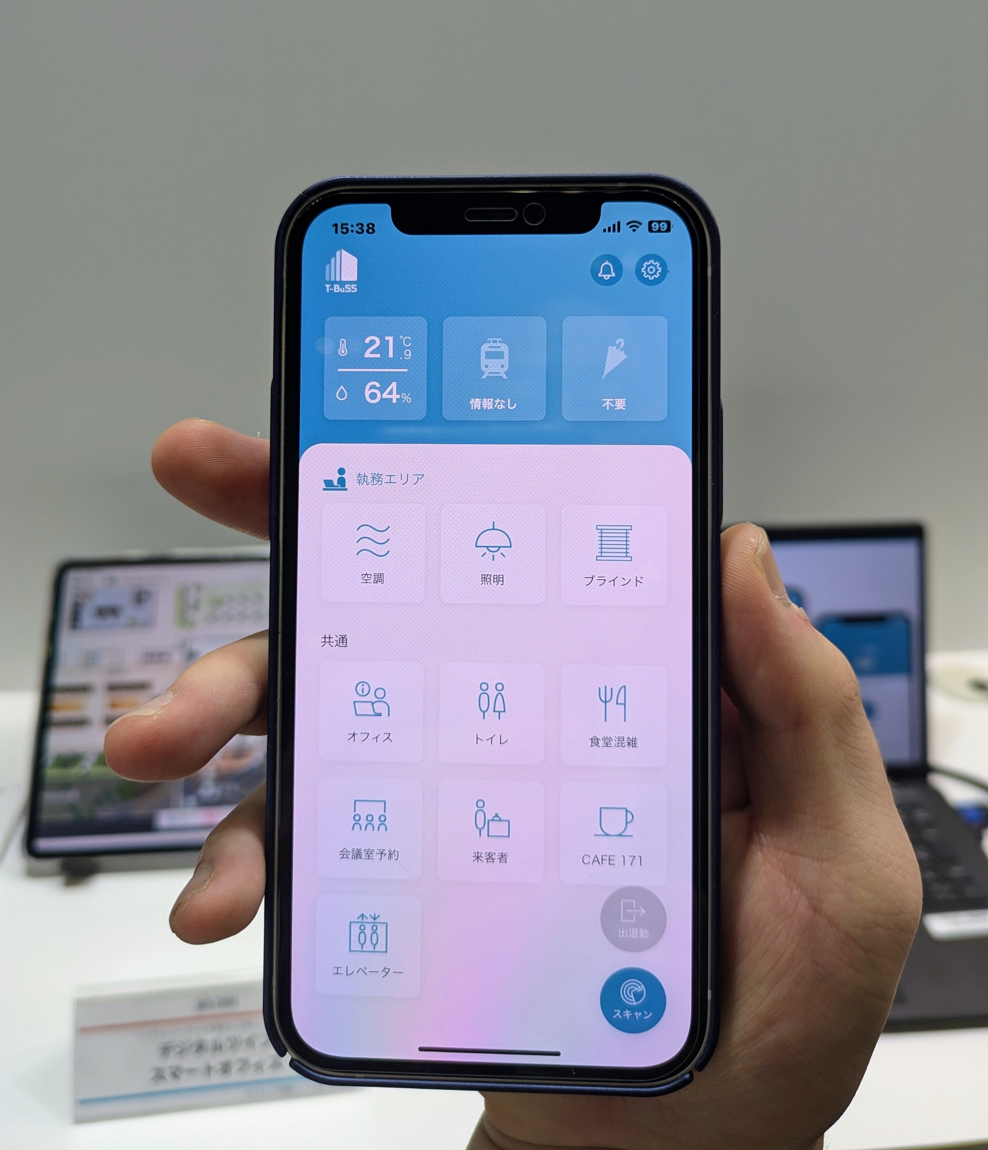 T-BuSSは自社開発したスマートオフィスアプリで、昨年11月に開業した新社屋「TODA BUILDING」(東京都中央区)に導入した。ビル内の設備やサービスと連携したプラットフォームを活用して入居者へ便利なサービスを提供する。