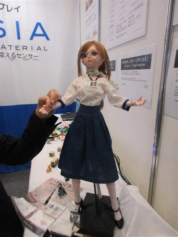 頭や手など触れた部分によって異なる音声を発するフィギュアのデモ=14日、千葉市美浜区の幕張メッセ