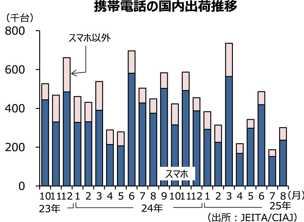 2025.10.16 8月の携帯電話国内出荷台数、前年比33%減