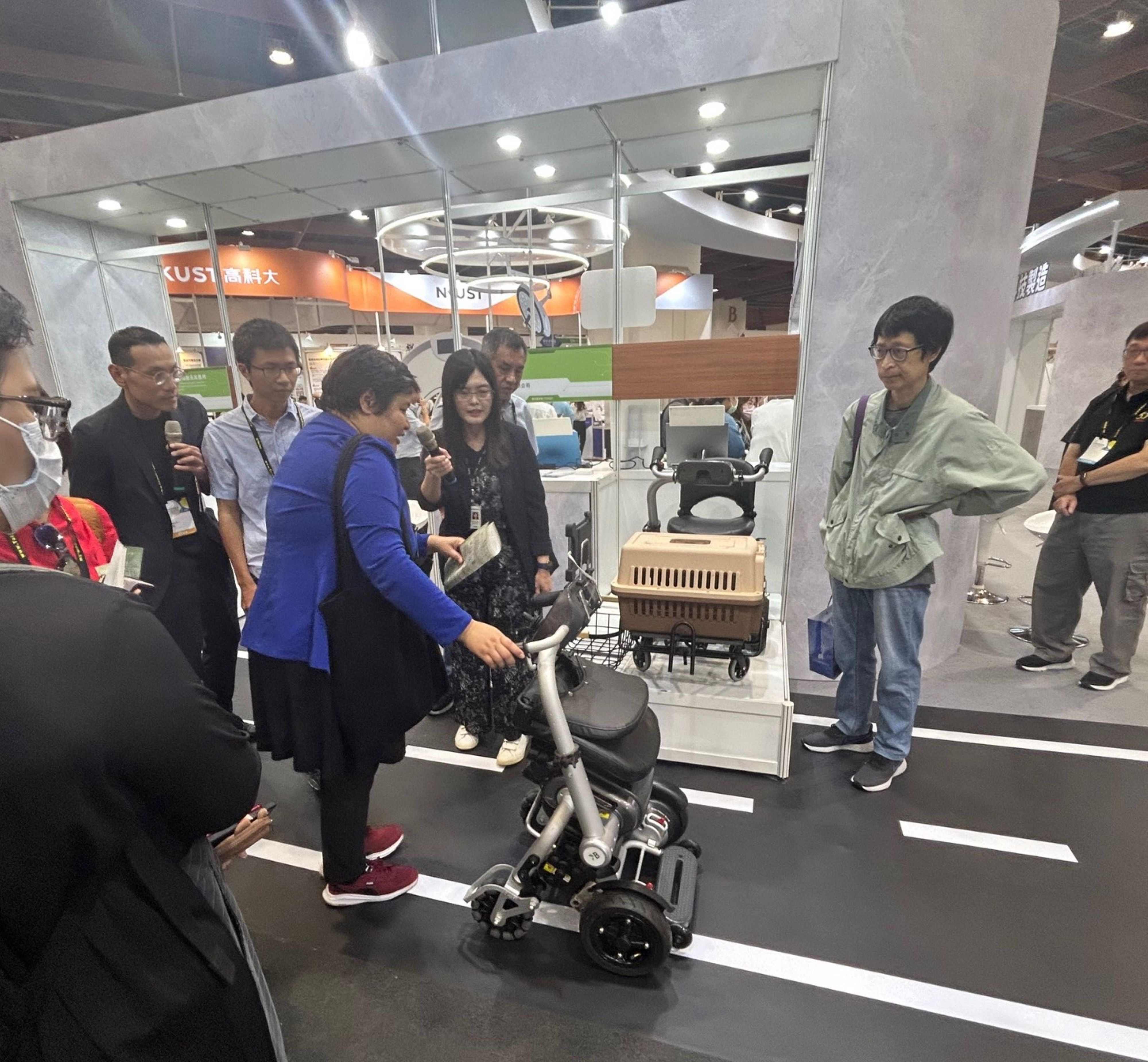 2日目のガイドツアーでは、Wistronの歩行補助器を紹介。同社の製品は自動で使用者との距離を測り、適切な形で歩行を補助する。使用者の健康データはアプリで収集され、歩行改善に向けた援助も行う。ガイドツアーの参加者が同社の歩行補助器を体験する姿もみられた。