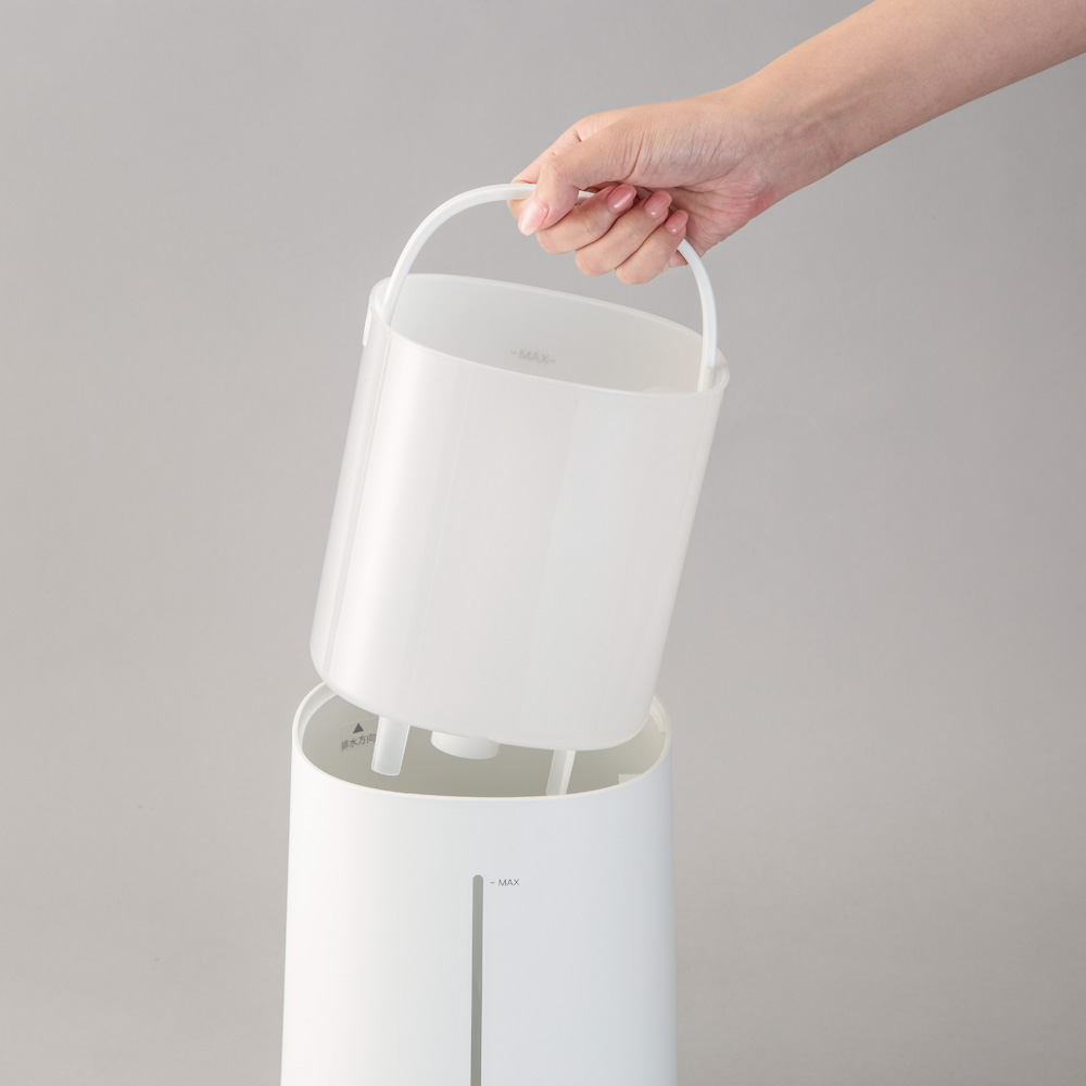 新製品は、ふたを開けずに上から直接給水できるほか、タンクを着脱してシンクや洗面台で給水可能。使う場所や状況に応じて2通りの給水方法を選べるため、使い勝手が良い。