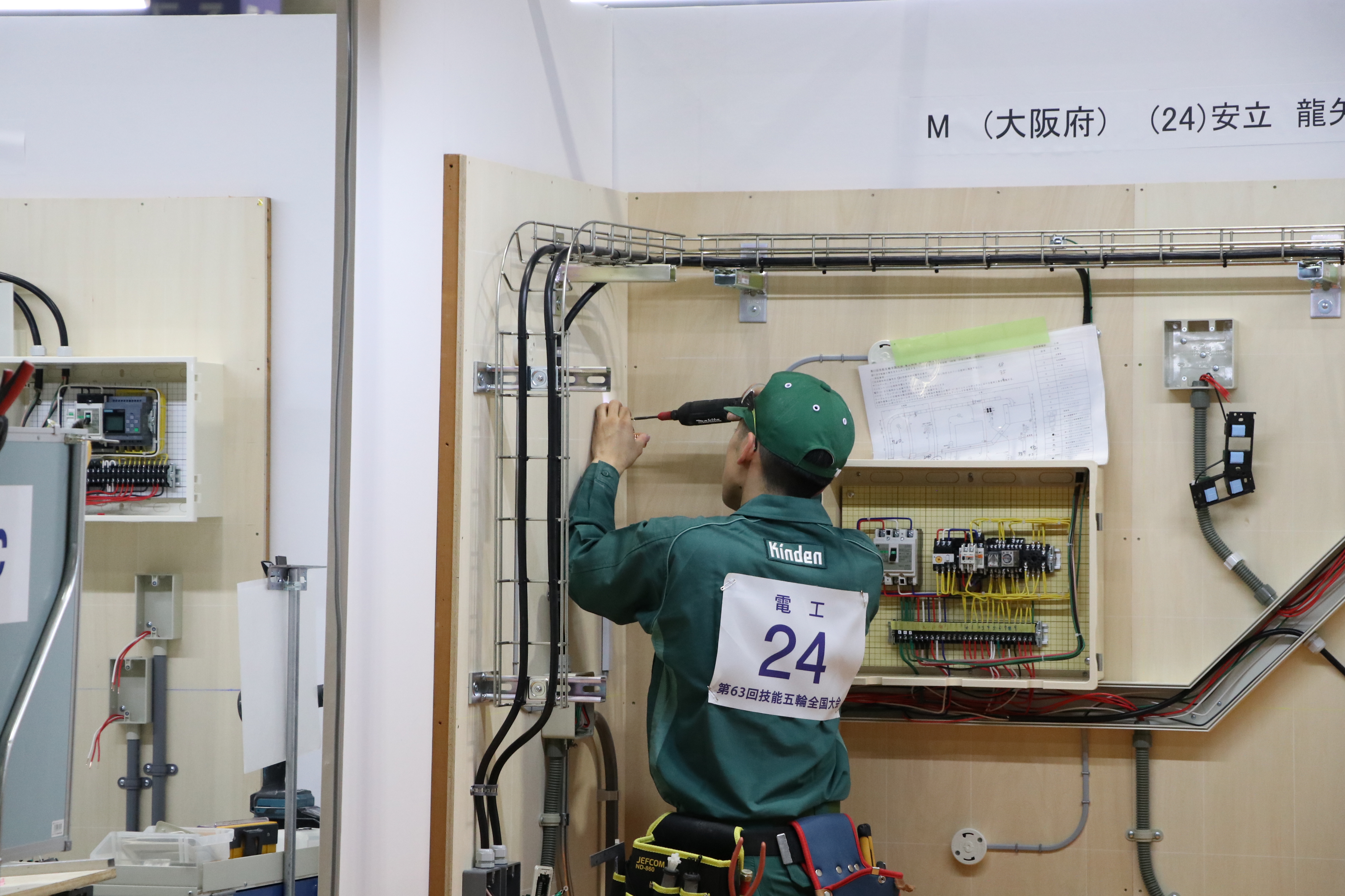 同大会は、若年層の技能の向上を図ることを目的に開催。今年は、愛知県国際展示場(愛知県常滑市)で開いた。開催期間は17日から20日まで。電工職種で金賞を受賞したのは、安立龍矢氏(大阪府)。情報ネットワーク施工職種では、床枝航太氏(京都府)が金賞を獲得した。