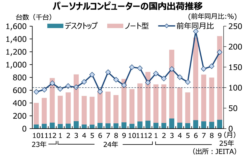 2025.10.21 9月のPC国内出荷数 前年同月比86.4%増の140万台
