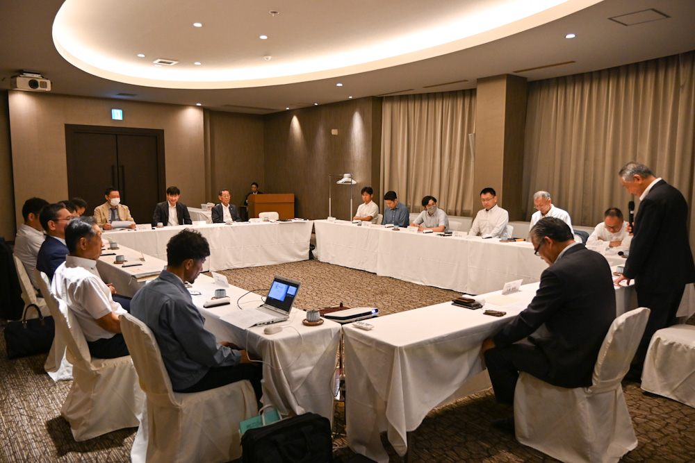 続いて行われた通常総会には53人が出席。委任状と併せて129人となり、総会が成立。自民党総裁の交代による今後の経済動向に期待が寄せられたことなどを報告し、各単会の活動内容についても紹介した。各会でAI(人工知能)の勉強会が盛んに行われていることにも触れ、最先端の半導体を取り扱う中・四国だからこそ最先端のAIにも取り組んでいきたいとした。