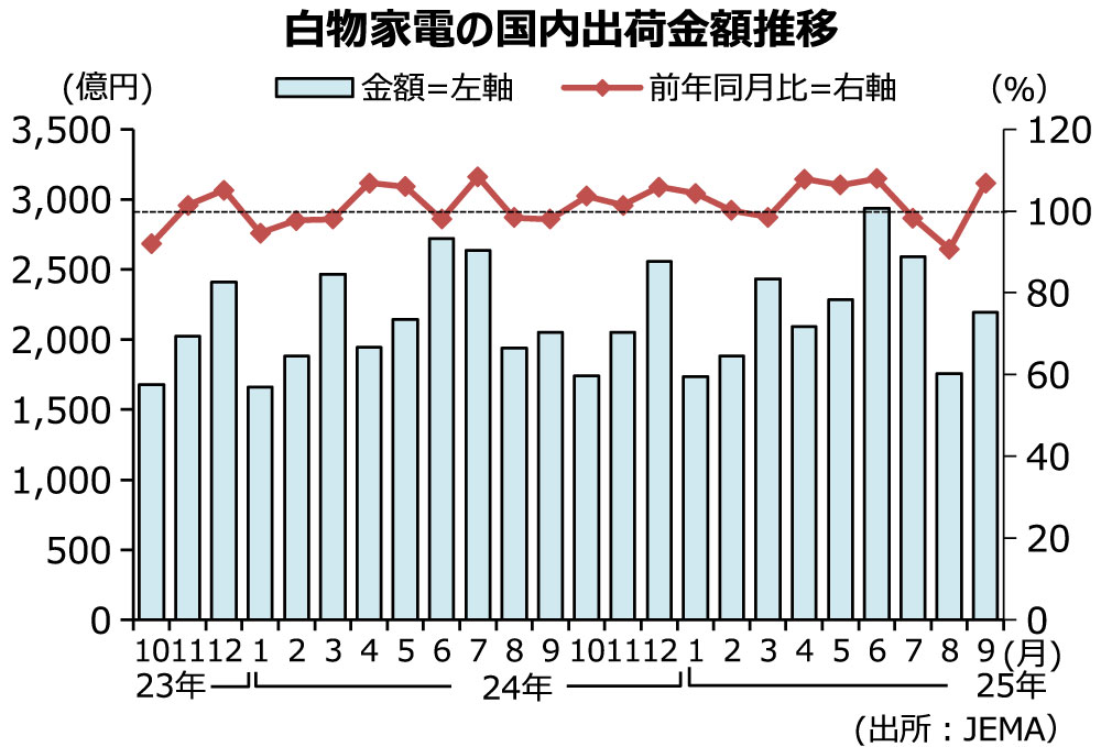 2025.10.21 白物家電4~9月出荷額、約1.4兆円 過去2番目の高水準 JEMA