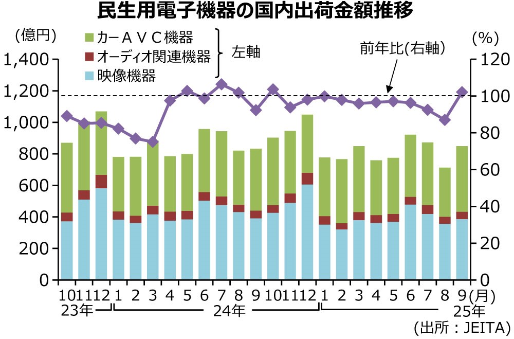 2025.10.22 AV関連機器、11カ月ぶりにプラス 9月、2.1%増の849億円 JEITA