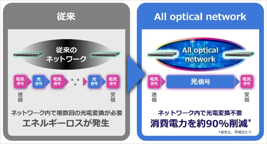 AI(人工知能)の普及やBeyond 5G/6G時代に予想されるデータトラフィック増加を見据え、高い拡張性を備えた大容量ネットワークを構築し、カーボンニュートラル達成に貢献する持続可能な通信インフラを整備するのが狙い。
