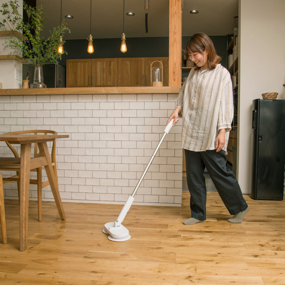 同シリーズは2015年に発売。電動ツインヘッドが二つのモップパッドを回転させ、腰をかがめることなく立ったまま床拭き掃除ができるのが特徴だ。専用のモップパッドは汚れを絡め取りかき出す効果の高い特殊構造の繊維を採用。水だけで目では見えない雑菌を99.9%除去する。