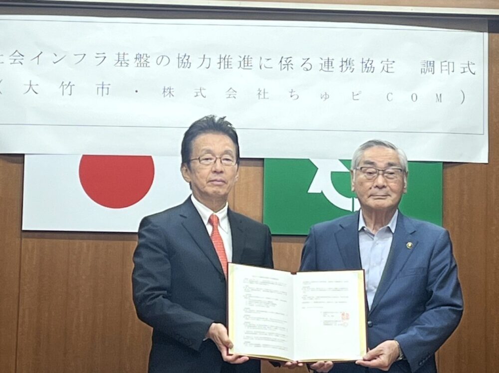 ちゅピCOM(広島市中区)は24日、広島県大竹市と「社会インフラ基盤の協力推進に係る連携協定」を同市役所で締結した。