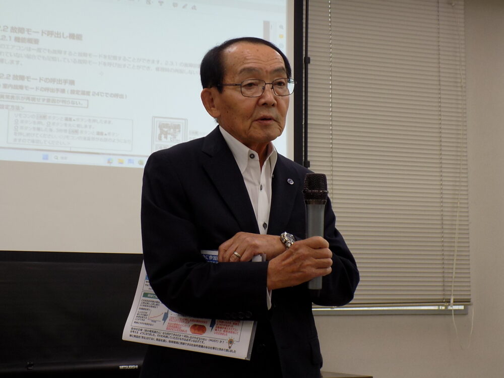 広島県電器商業組合(尾藤武士理事長)は、広島県福山市の三菱電機住環境システムズ中四国社福山営業所で2025年度「サービス技術講習会」を開催した。対象は県西側の西部地区組合員。パナソニック、三菱電機、シャープ、東芝の4社がそろう講習会は近年珍しく、75人の参加者が集まった。