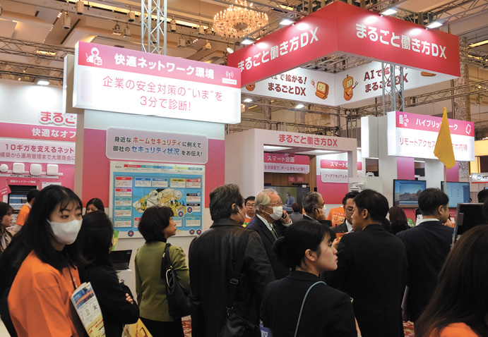 大塚商会の最新製品やサービスを紹介する「実践ソリューションフェア2025」ではどのブースも多くの来場者でにぎわいを見せた=2月、東京都内