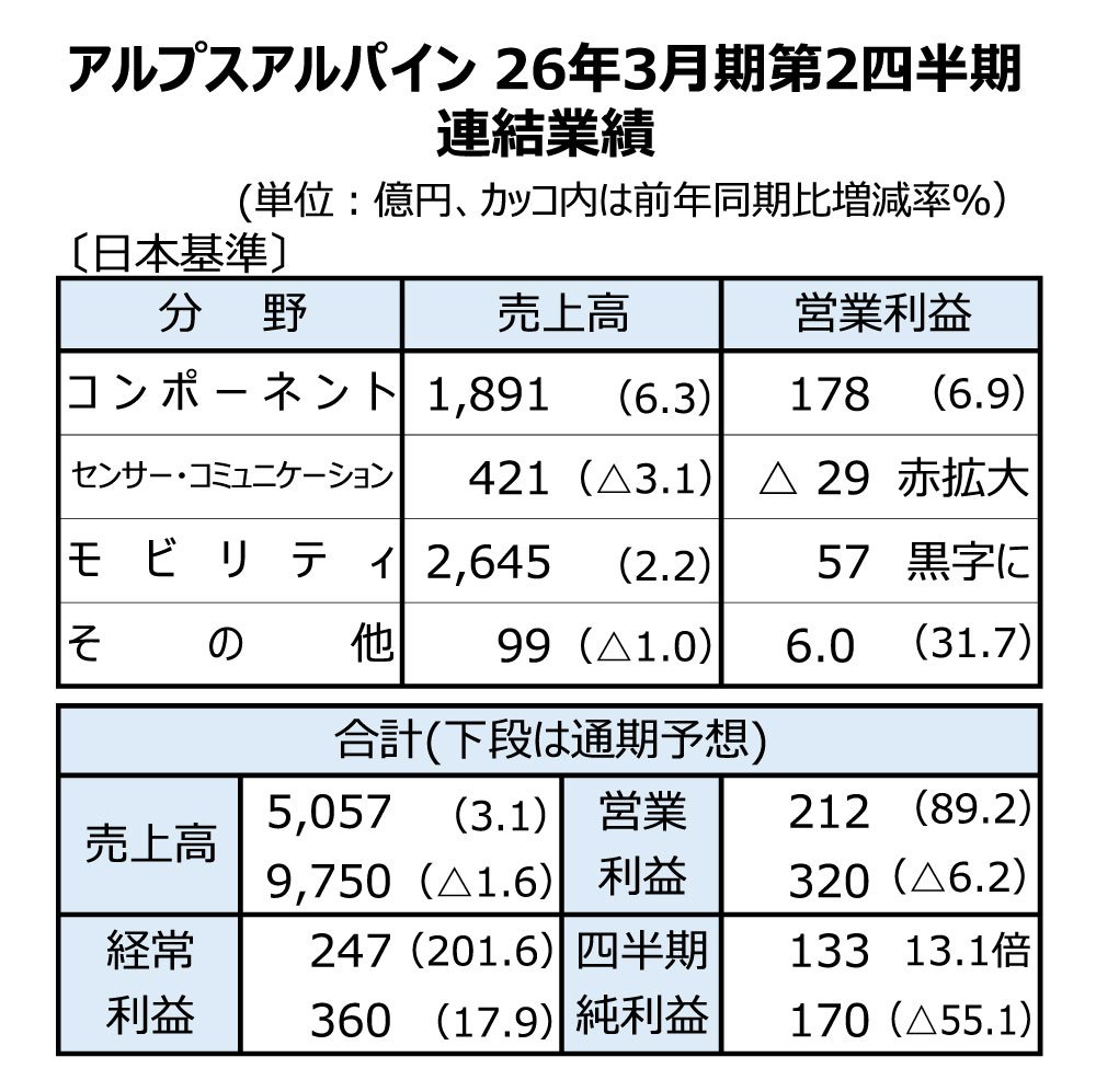 アルプスアルパイン 26年3月期第2四半期連結業績