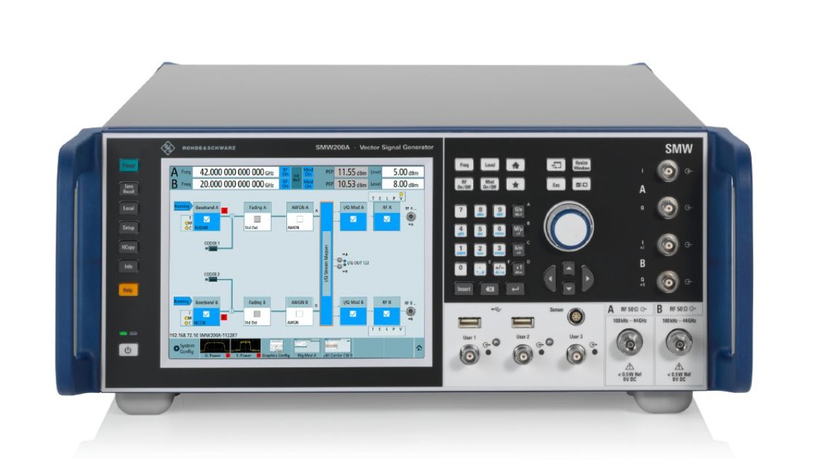今回、AI受信機の試験に当たり、R&Sのベクトル信号発生器「SMW200A」や信号・スペクトラムアナライザーの新製品「FSWX」などが使用される。