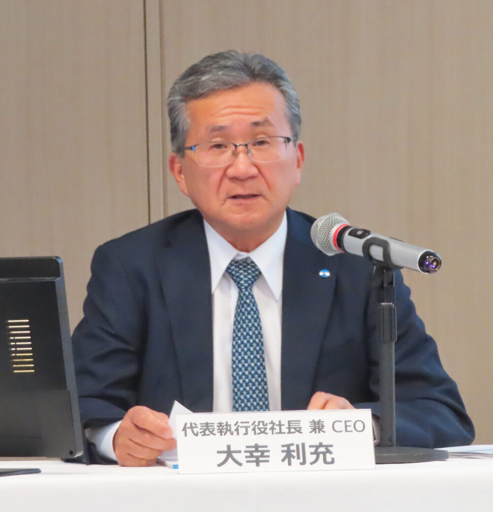大幸利光社長兼CEOは会見で「中期計画(FY25)の仕上げの年度として、経営目標(ROE5%以上)に対して順調に進展している」と述べたうえで、「インダストリー事業の成長加速と成長の芽の育成を次期中期経営計画に反映させる」と強調した。
