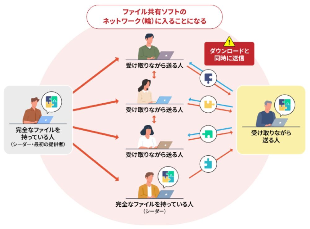 総務省は7日、ファイル共有ソフトを通じた著作権侵害が急増しているとして、利用者に向けた注意喚起を行った。2024年の発信者情報開示請求のうち約96%が特定ソフトによるアダルト動画の違法共有に関するもので、同省は「ダウンロードだけでは済まない」と警鐘を鳴らしている。
