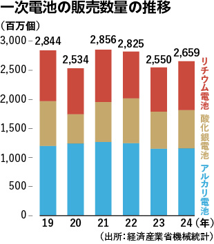 アルカリ乾電池の国内市場は、2024年は前年比2.9%増の14億800万個、金額... (つづく)