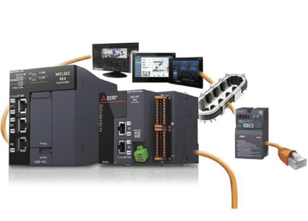 1台で、高速・高精度な多軸モーション制御を実現するMELSEC MXコントローラは、シーケンス、モーション、ネットワークという三つの制御を一体化させたことが特徴。データの可視性や接続性を向上する「OPC UAサーバ」や「CC-Link IE TSNネットワーク」も搭載。サイバーセキュリティーへの対応やノーコードプログラミング機能も強化し、製造DXを支援する。さまざまな分野で高まる多軸制御のニーズにも対応し、1.2㎳(ミリ秒)/128軸の高速制御、最大256軸の多軸制御が行えるようにした。