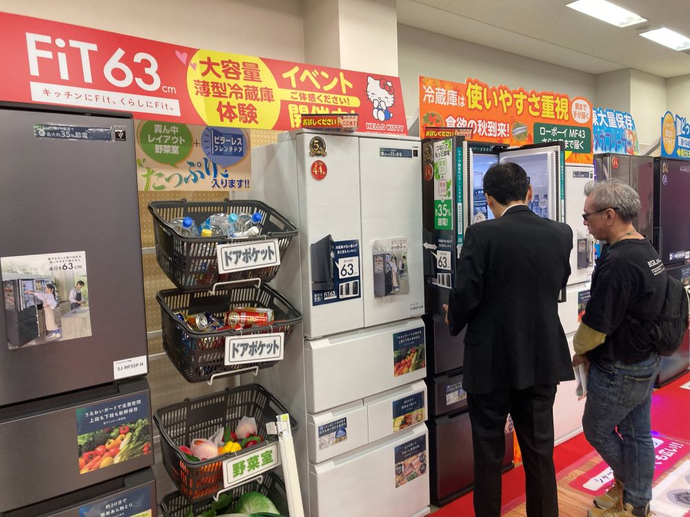 新製品を展示したテレビは、消費電力計を表示して省エネ性を訴求。サイズなど機種ごとの比較展示も行った。洗濯機は新製品で8㎏のドラム式洗濯... (つづく)