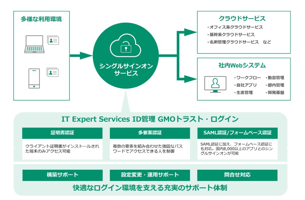 「IT Expert Services ID管理 Powered by GMO トラスト・ログイン」の利用イメージ