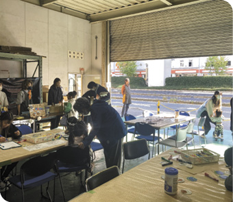 工場内を開放し、ワークショップでコースター制作、お守り制作、抽選会などを実施した。