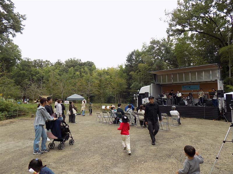 フェスタ当日は、大型トラックをステージにして音楽部による野外ライブを実施。Jポップやロック、懐メロなどを演奏が会場を盛り上げた。また、竹細工のコーナーでは竹馬、竹トンボなど竹細工遊びの場を提供。参加した小学生以下の子どもにはお菓子を用意した。なごみの里の竹を粉砕した腐葉土も無料配布した。