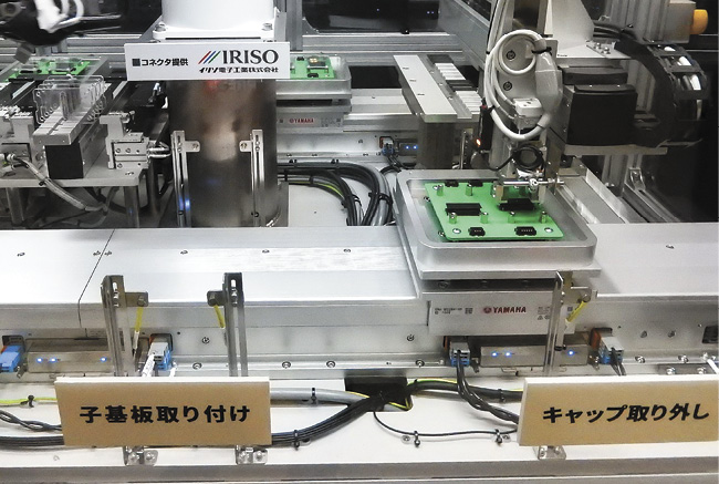 イリソ電子工業の「オートメーションコネクタ」自動組み立てデモ