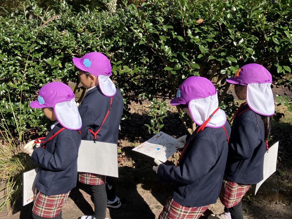 同支社のスタッフ5人が先生役となって、落ち葉や木の実に実際に触れ、匂いや感触を確かめながら観察することで自然の循環サイクルへの理解を深めた。園児たちは自分が見つけたドングリや木の葉を袋に入れて、「お家に持って帰ってみてもらう」と喜び合っていた。
