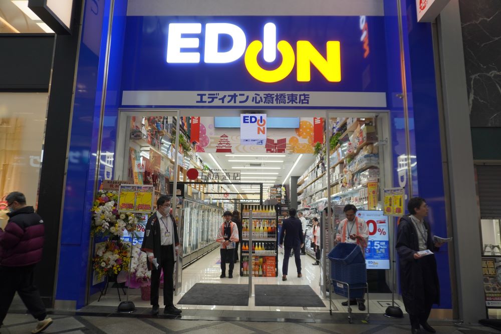 エディオンは12日、3店舗目となる免税専門のエディオン心斎橋東店(大阪市中央区)をオープンした。観光地にもなっている心斎橋筋商店街への出店で、同店から20mほどの場所にある心斎橋西店(同)とともにインバウンド需要を取り込んでいく。中国人観光客が減少する中、韓国人から人気のある日本酒などの品ぞろえを強化することで、幅広い国籍の観光客の来店を狙う。