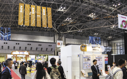 今年のテーマは「AI×サスティナビリティ×半導体」。市場の活況を支えるAIを主軸に掲げた。AIの演算処理を担うロジック半導体やデータを記憶するメモリー半導体は厳しい性能向上の要求に対応するため、チップを切り出す前のウエハー(薄板)を製造する前工程では回路配線の微細化が進む。チップを切り出し樹脂などで封止する後工程で積層化や異種のチップを集積する技術が進展している。旧来の製造装置や材料では対応が難しく、それぞれが新たな需要を生み、日本メーカーも強みを発揮している。