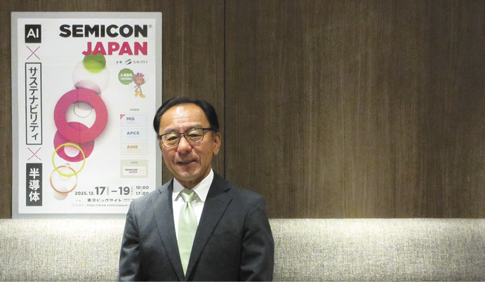 セミコンの名を冠して世界各国で開催する展示会はそれぞれ色合いが異なり、日本では製造装置と材料の最新情報を中心に発信してきた。AI(人工知能)時代の到来や環境対応の加速を背景に、技術・産業・人材まで射程を広げて役割を変貌させつつある。17~19日に東京ビッグサイトで開催される「SEMICON JAPAN 2025」は「AI×サスティナビリティ×半導体」を軸に、前工程から後工程、設計、経済安全保障、人材育成までを横断して議論を深める構成とした。主催者であり半導体の国際団体SEMIの日本支部であるSEMIジャパンの浜島雅彦代表に狙いを聞いた。