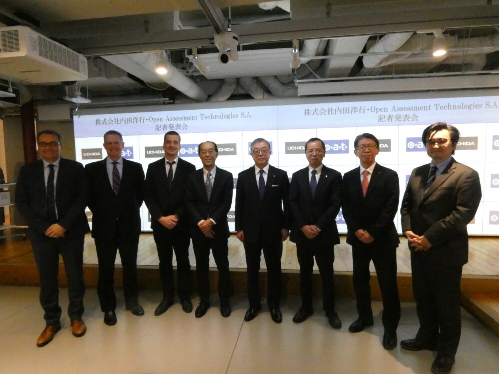 内田洋行の大久保社長(右から4人目)とOATの町田潔共同CEO(同5人目)