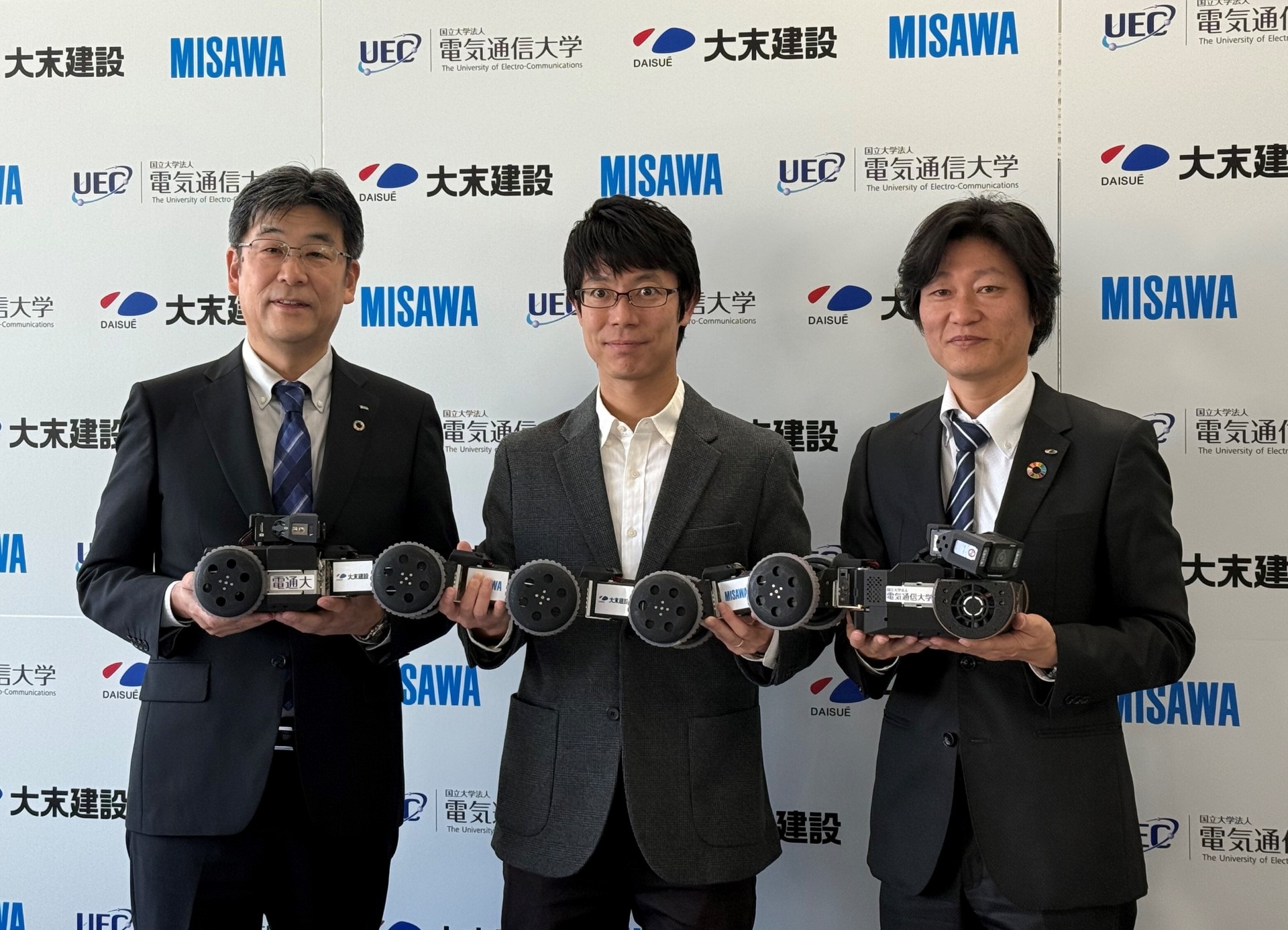 ベースとなるロボットは2022年、電気通信大大学院情報理工学研究科の田中基康教授と大末建設が共同開発し、23年度から建設現場の地下ピット点検に導入。その後、戸建て・賃貸住宅での活用を視野にミサワホームが参画し、3者の連携体制を構築した。
