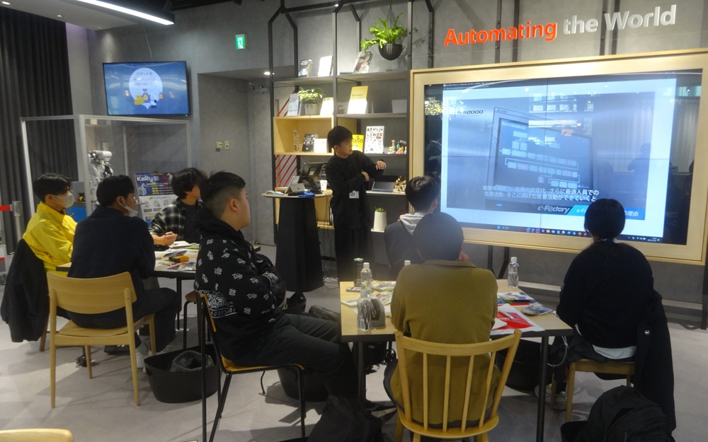 学生に向けて、FA(ファクトリーオートメーション)とは何かという説明や同社の製品の紹介などが行われた。実際に製品が使われている工場の動画や、もしも機械が休んだらという内容で同社が作成した「機械の休日」のムービーを再生し、生徒たちの関心を集めた。