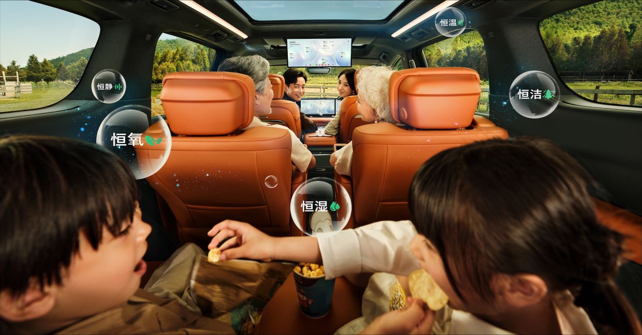 また、後部座席用エンターテインメントスクリーン、温度・湿度・光・空気質・音の五つの要素を制御して快適な車室空間を実現する「5常環境」機能も搭載し、ウェルネスを重視した車内空間が特長となっている。