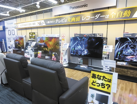 テレビの大画面化が進んでおり、店頭で実際に体験できる