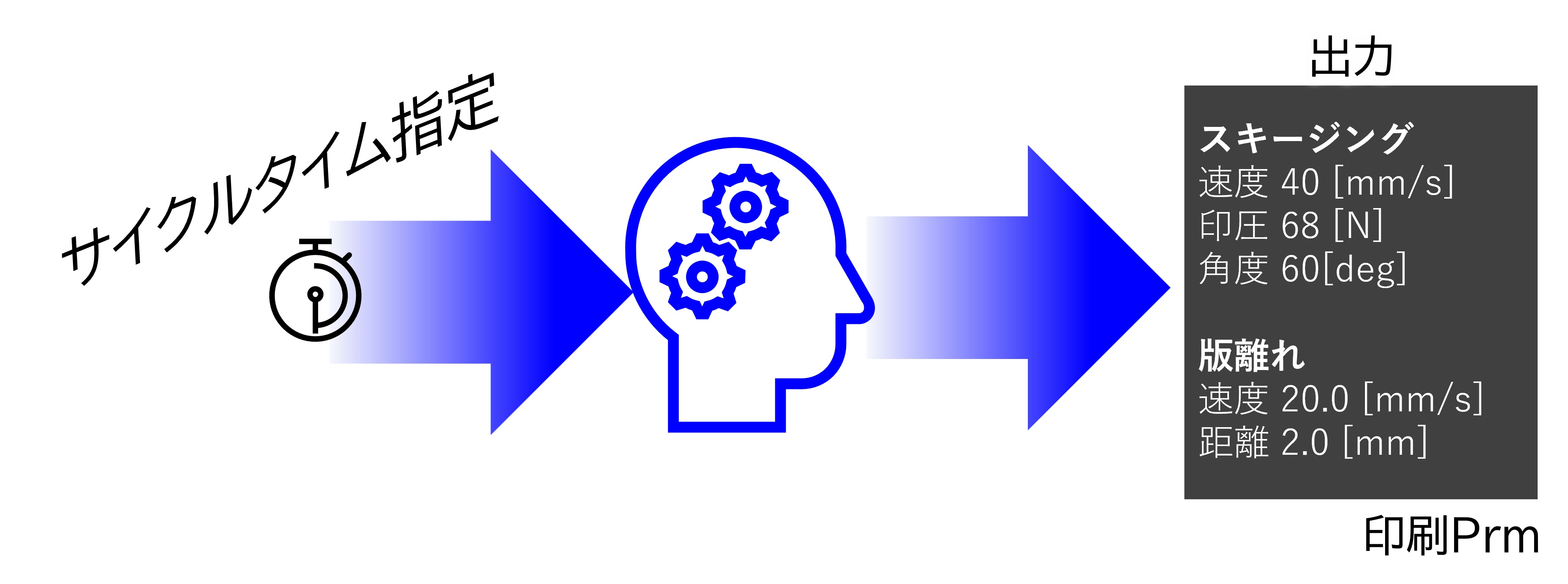 当社は条件設定の属人化を解消するため、過去データを活用して初期条件を提示する第一世代に続き、さらに進化した第二世代ではライン全体のサイクルタイムに合わせて印刷パラメーターを自動整合する機能を実現した(図5)。また、印圧・速度など社内ルールからの逸脱も自動検知し、適切な条件へ誘導する機能も追加された。これにより、初回印刷から狙い値に近い品質を確保でき、立上げ工数を大幅に削減できる。量産では微修正のみで品質を維持できるため、試作から量産への移行も容易になる。