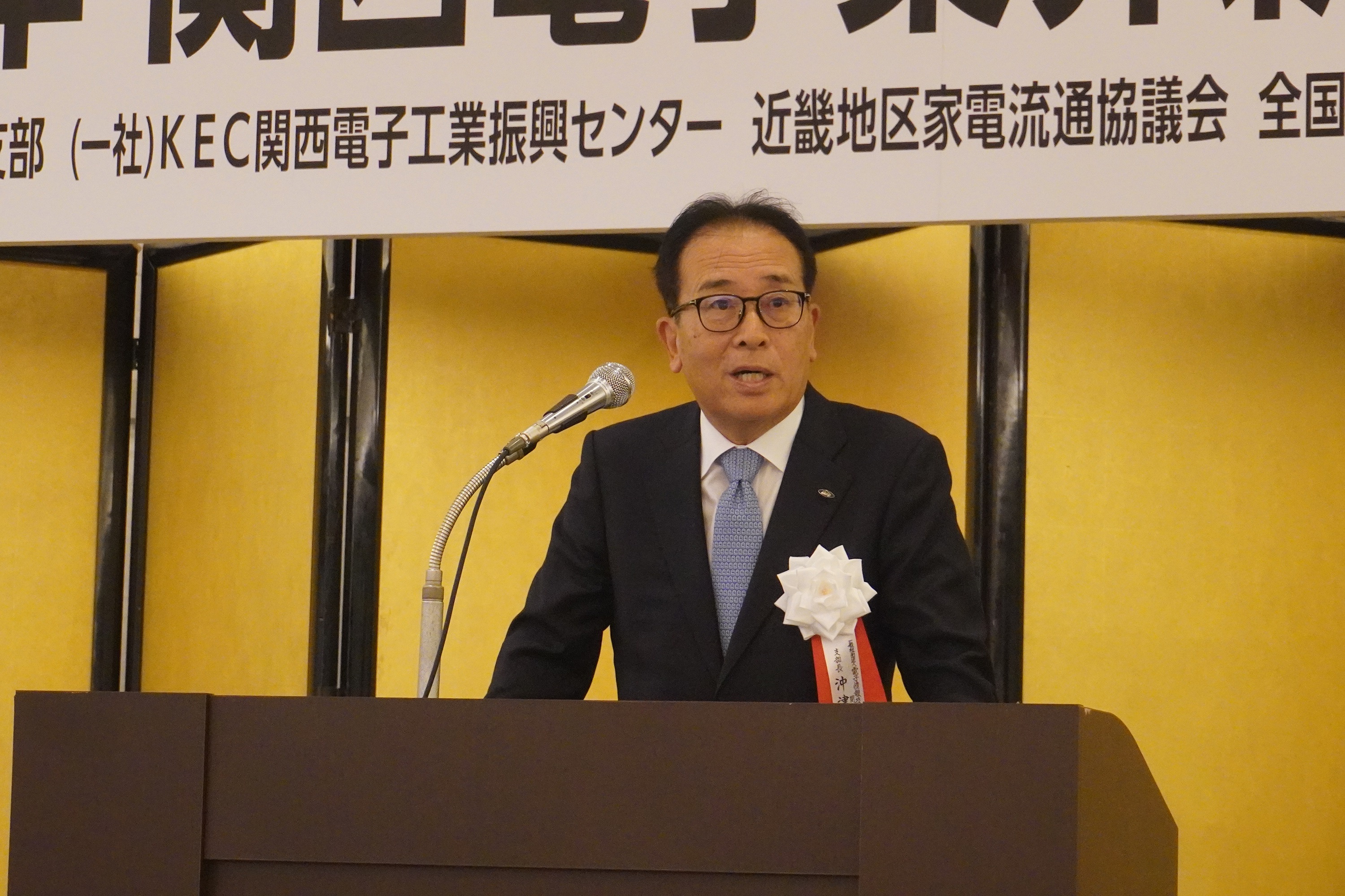 あいさつするJEITA関西支部の沖津支部長