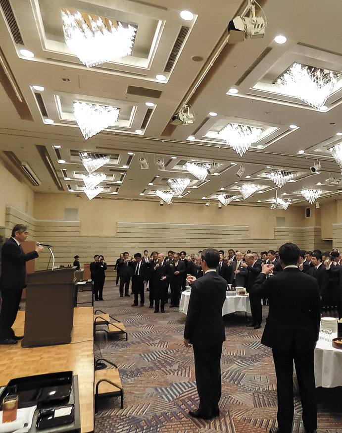 2026年が幕を開け、各企業が年頭所感で新年の展望を示している(写真は日新電機の年賀交歓会=京都市下京区)